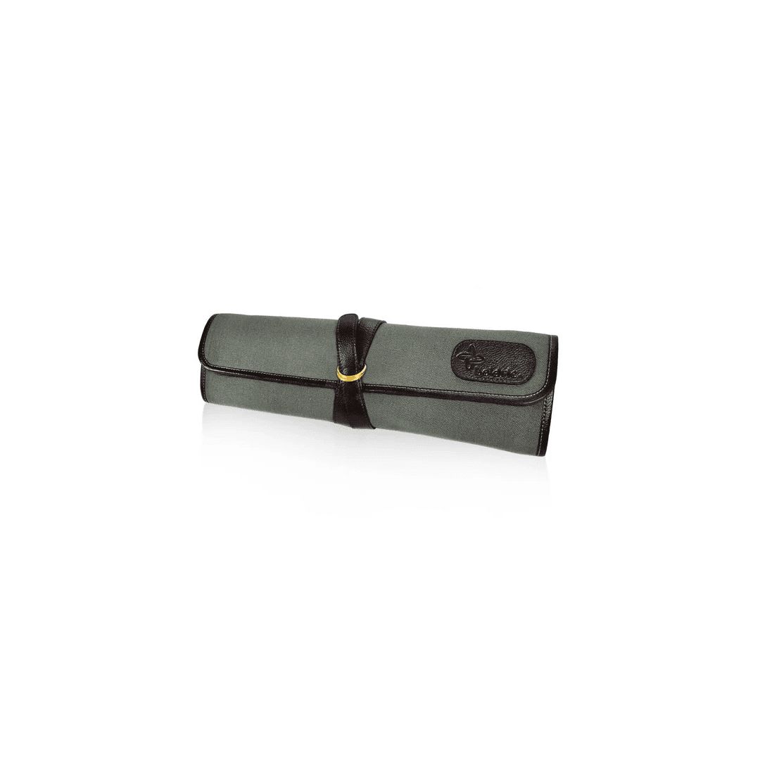 This slim knife bag has 7 slots for knives and tools and can hold a knife with an overall length of 17” (42 cm). When unrolled each knife bag has an overall dimension of 19” x 19” (48 cm x 48 cm).