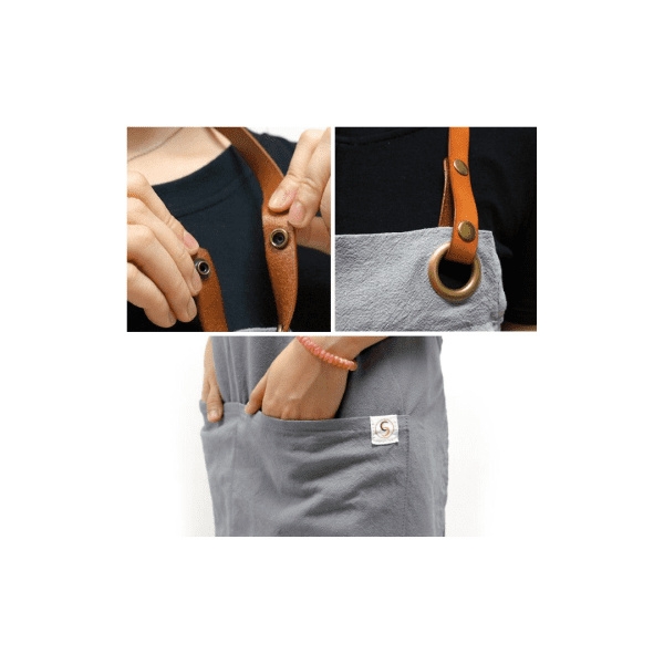 Our (Ash) gray linen apron is made with light breathable material for anyone who is rockin’ it in the kitchen or barista all day.