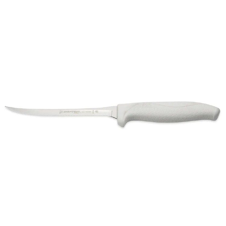 The SofGrip™ product line is the standard in non-slip and comfortable design for demanding kitchen environments. A software rubber grip reduces stresses that may cause fatigue and common wrist injuries like carpal tunnel syndrome. Dexter scalloped blades are manufactured from proprietary DEXSTEEL™ stain-free, high-carbon steel are individually ground to create specially designed scallops forming multiple sharp cutting edges. The points of the scallops easily break through rough rinds and pierce the firm skin of fruits and vegetables and also protect the sharp cutting edges. After breaking through the tough outer surface, the curved scalloped edges slice through soft interiors without damaging them. Made in USA. Items marked with the NSF logo are NSF Certified.
