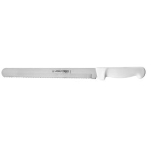 The Dexter 6-in. Cleaver – Basics® Series (49542) is as heavy-duty a knife as one can expect to encounter in a commercial kitchen. Cleavers are intended for whacking down on thick or tough cuts of meat, thick-skinned melons and other food items that require a lot of force and a sharp edge to cut through. This cleaver is constructed with a high-carbon steel blade with a hollow ground edge. The blade tip is complete with a hanging hole cut into the metal to provide an easy storage option.