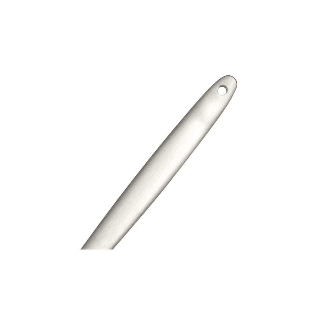 The hole in the handle tells you the spoon is perforated when stored blind in a bain-marie.