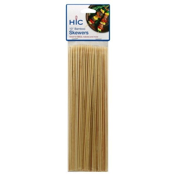 • Includes 100 bamboo skewers; easy to use; won’t melt like plastic skewers; disposable for easy cleanup