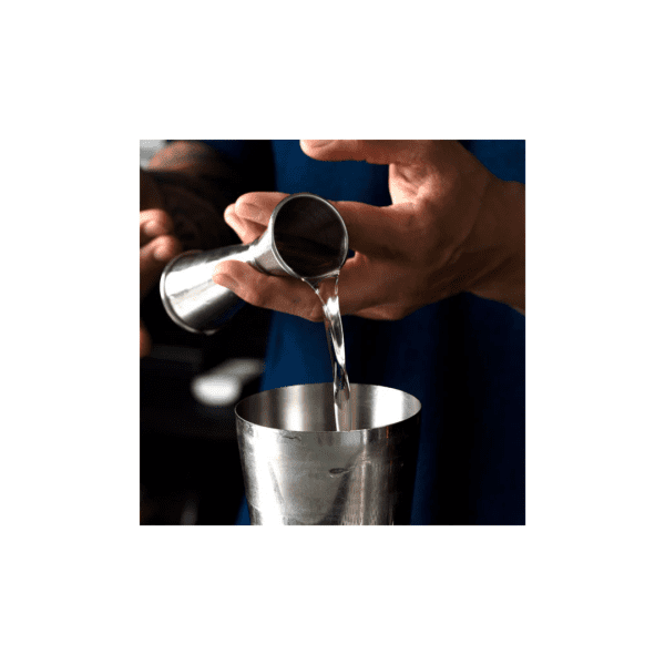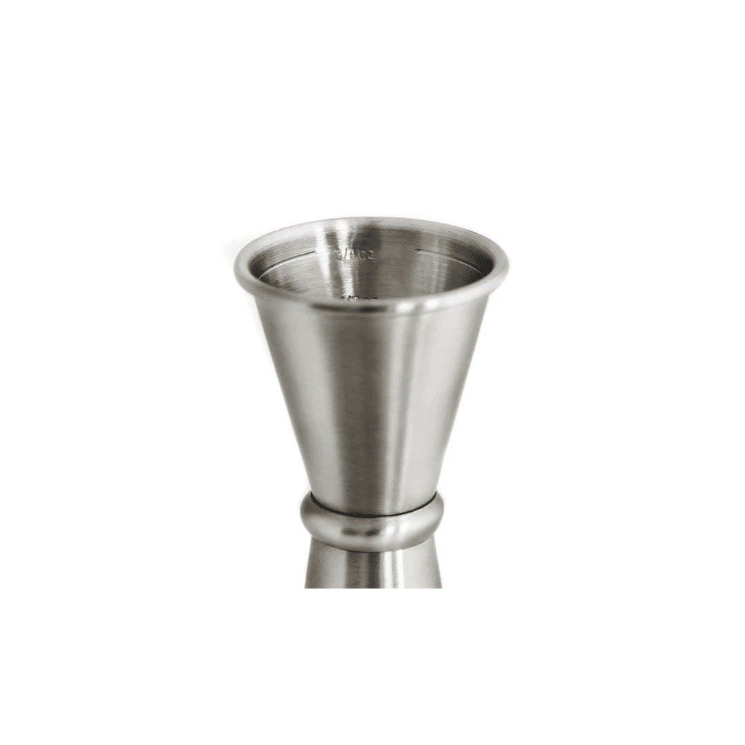 1oz (30ml) over 1.5oz (45ml), with ½oz (15ml) and ¾oz (22ml) markings on the inside.