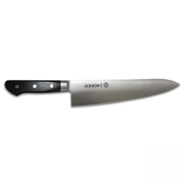 SK-4 Carbon Steel. This is the preferred blade material of professional chefs the world over. It’s light, easy to sharpen and takes a very keen edge due to the fine grain structure of the steel.