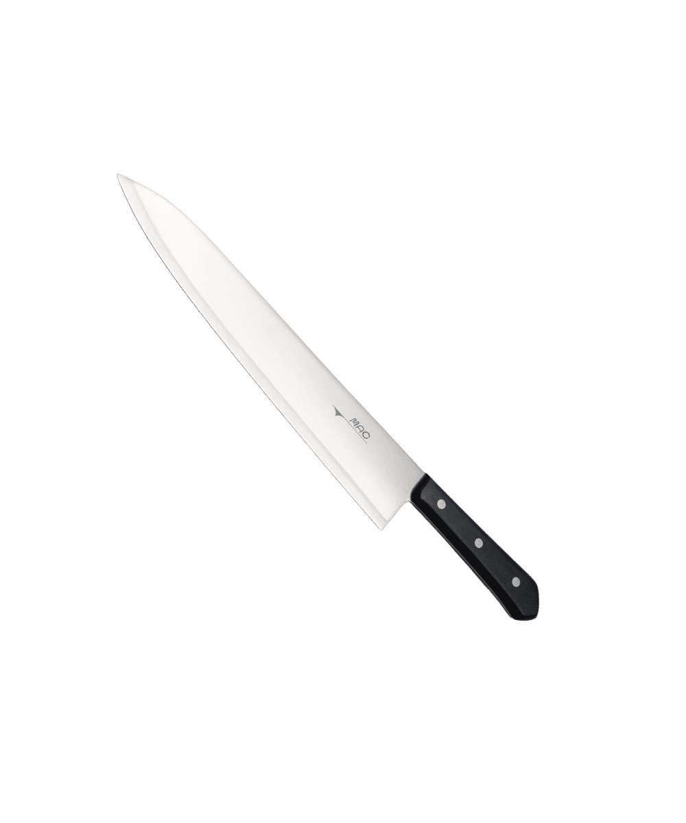 Comfortable balance, light-weight, sharp edge, and thin blade all combine to create a precision tool that is easy to handle and control, reducing the risk of hurting yourself while working on the cutting board. Due to their light-weight nature, MAC Chef Series knives can make quick work out of almost any food. Made in Japan with a 25-year warranty.