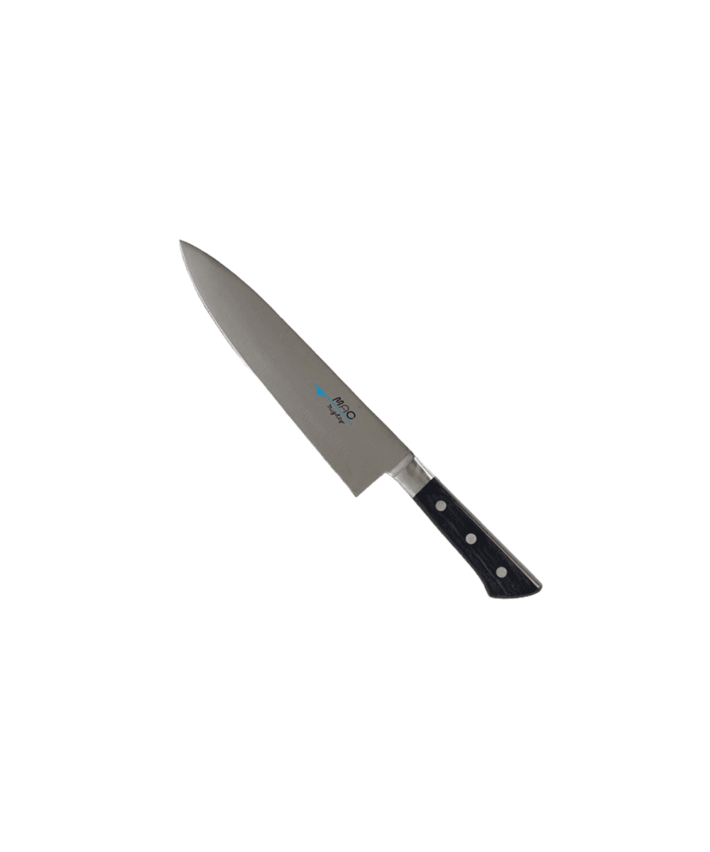 This is an 8½” version which is fairly standard for most home cooks and professional chefs. A multipurpose knife for just about anything you would cut on a cutting board.