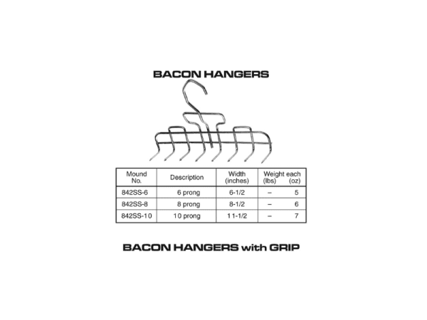 These pronged stainless steel bacon hangers are perfect for hanging pork bellies in your smoker so you can enjoy delicious homemade bacon. Can also be used to hang spare ribs, jerky, even brisket. Sharp points pierce meat easily. Hang hook fixture is offset to avoid tipping when loaded.