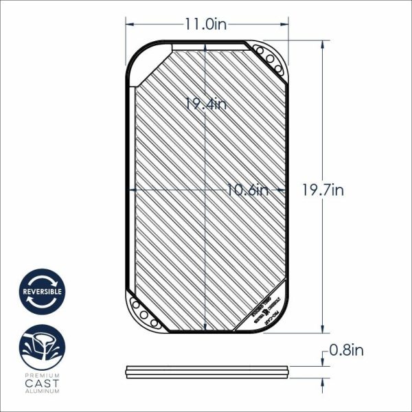 Spanning two burners, this large-capacity griddle features a two-sided design. A smooth side reverses to a ribbed grill side which sears flavorful grill marks into your foods as they cook. For cooks who live in small spaces and don’t own a grill, this offers a simple solution to achieve tasty grilled flavor indoors. Cast aluminum construction means this pan is hefty, but light enough to easily lift and maneuver in your kitchen, and will cook and brown foods very evenly across its surface. Made in USA.