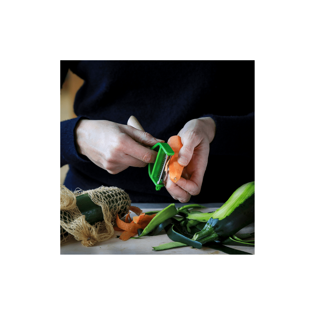 The varnished beechwood handle features a spot for your index finger, providing comfort and protection while peeling, and is suitable for both right-handed and left-handed users.