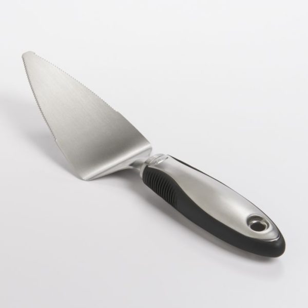 Sleek aesthetics and ergonomic design define the OXO SteeL line of kitchen and household tools. They feature brushed stainless steel handles for durability and flexible fins for ultimate comfort. The SteeL Pie Server features a flexible steel head with serrations on both sides.