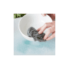 Thoroughly cleans stainless steel pots and pans.