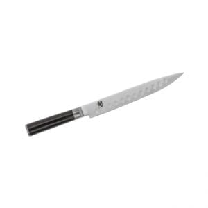 The Shun Classic Series feature a proprietary VG-MAX cutting core, a high-end stainless steel which is extremely hard resulting in an edge that is incredibly sharp and retains that sharpness longer. The Damascus cladding, with its 34 micro-layers of steel on each side to support the core, offers stain and corrosion resistance and helps food release from the blade. The blade is hand sharpened to a 16 degree angle on each side for top performance. The D-shaped ebony PakkaWood handle is beautiful and durable and does not harbor bacteria.