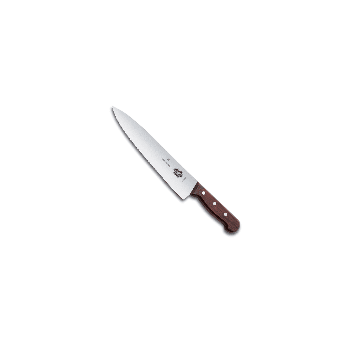 Carving needn’t be a challenge; the secret’s in both exceptional cooking and specialist tools. Cue our Wood Chef’s Knife with wavy edge to the cutting board. Expertly engineered to deliver faultless balance and relentless stability, this is a blade to add to your kitchen arsenal for years to come. While the wavy edge blade delivers maximum control on a variety of joints and meats, the elegant wooden handle feels natural and comfortable in your hand. Conquer your carving